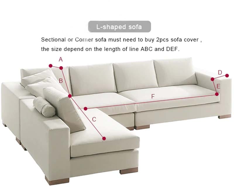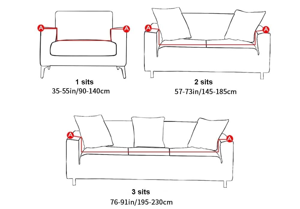 Viktigt– För en hörnsoffa, L-formad soffa eller U- soffa rekommenderas det att du mäter varje del av soffan och köper rätt storlek till varje soffdel.